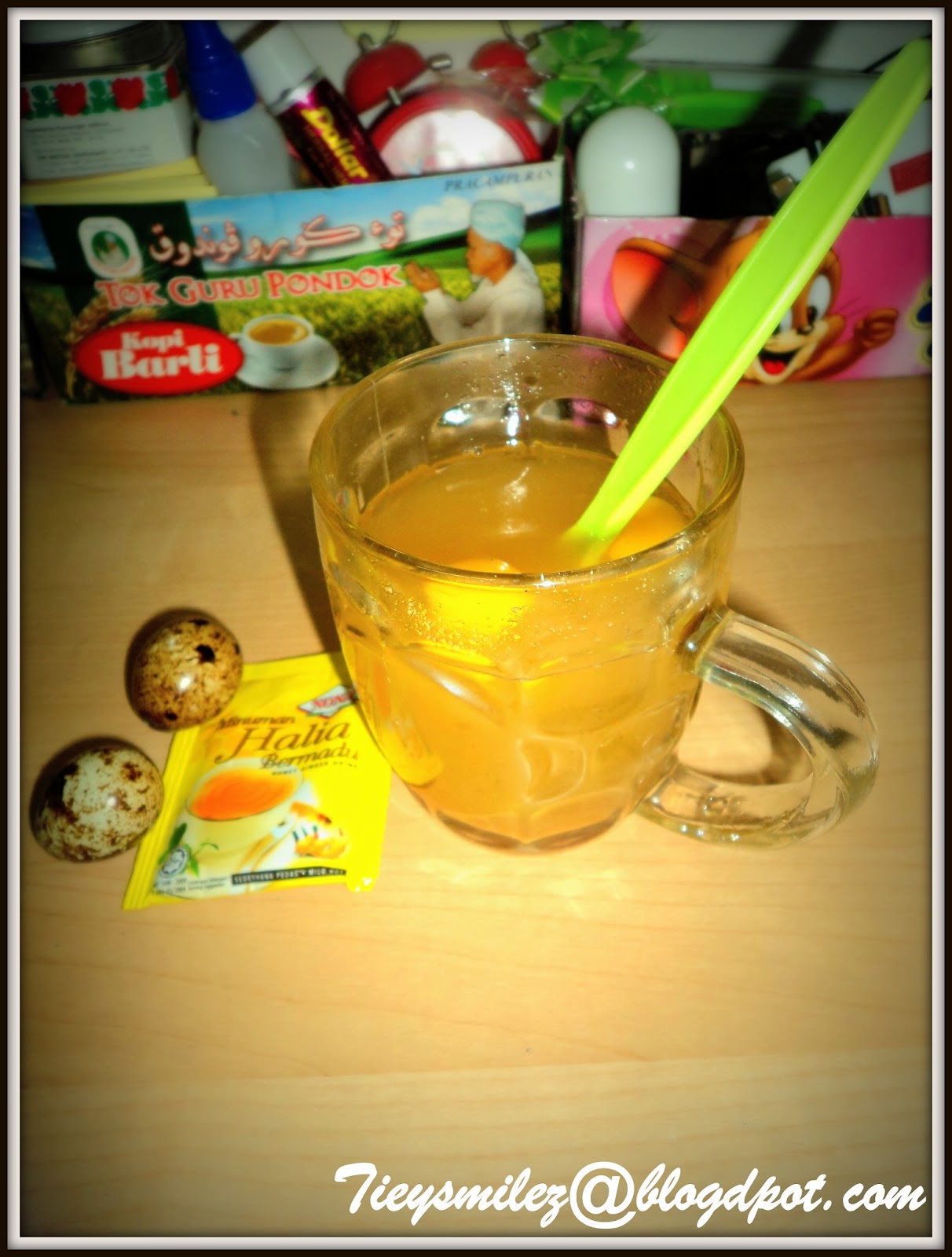 dah tertulis kat atas tu "Air Halia+Madu+Telur Puyuh"! Korang pernah